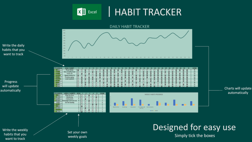 🌟 User-Friendly Interface: No Excel expertise needed! Our habit tracker comes with an intuitive interface, making it easy for anyone to use and start tracking habits from day one.